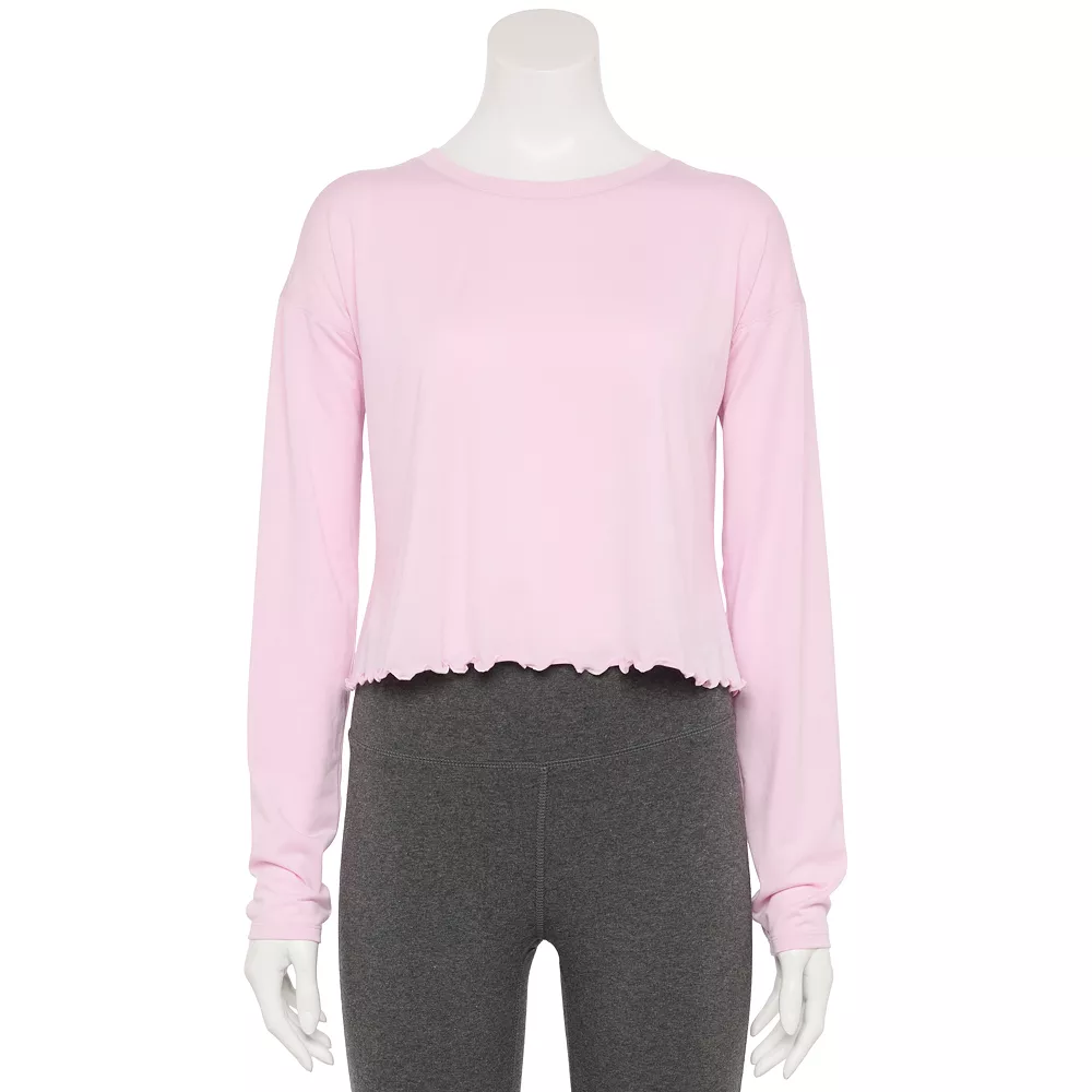 Amp up your active wardrobe with this women’s lettuce-edge cross-back top from Tek Gear.
